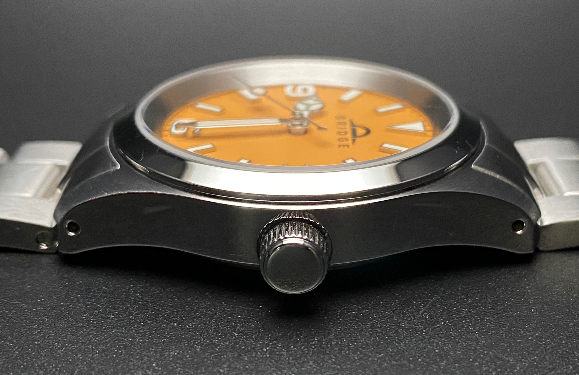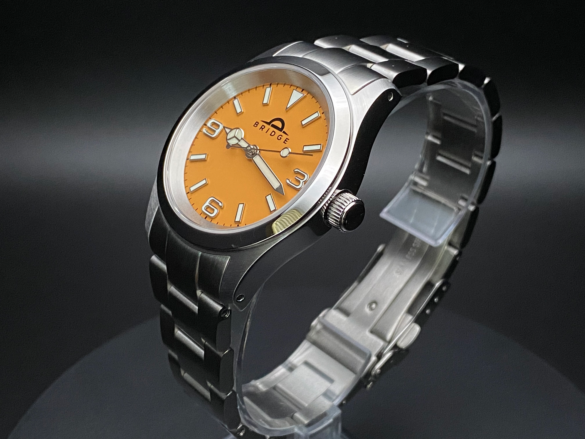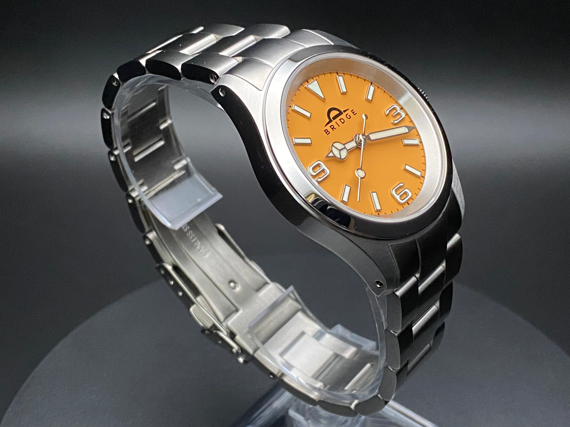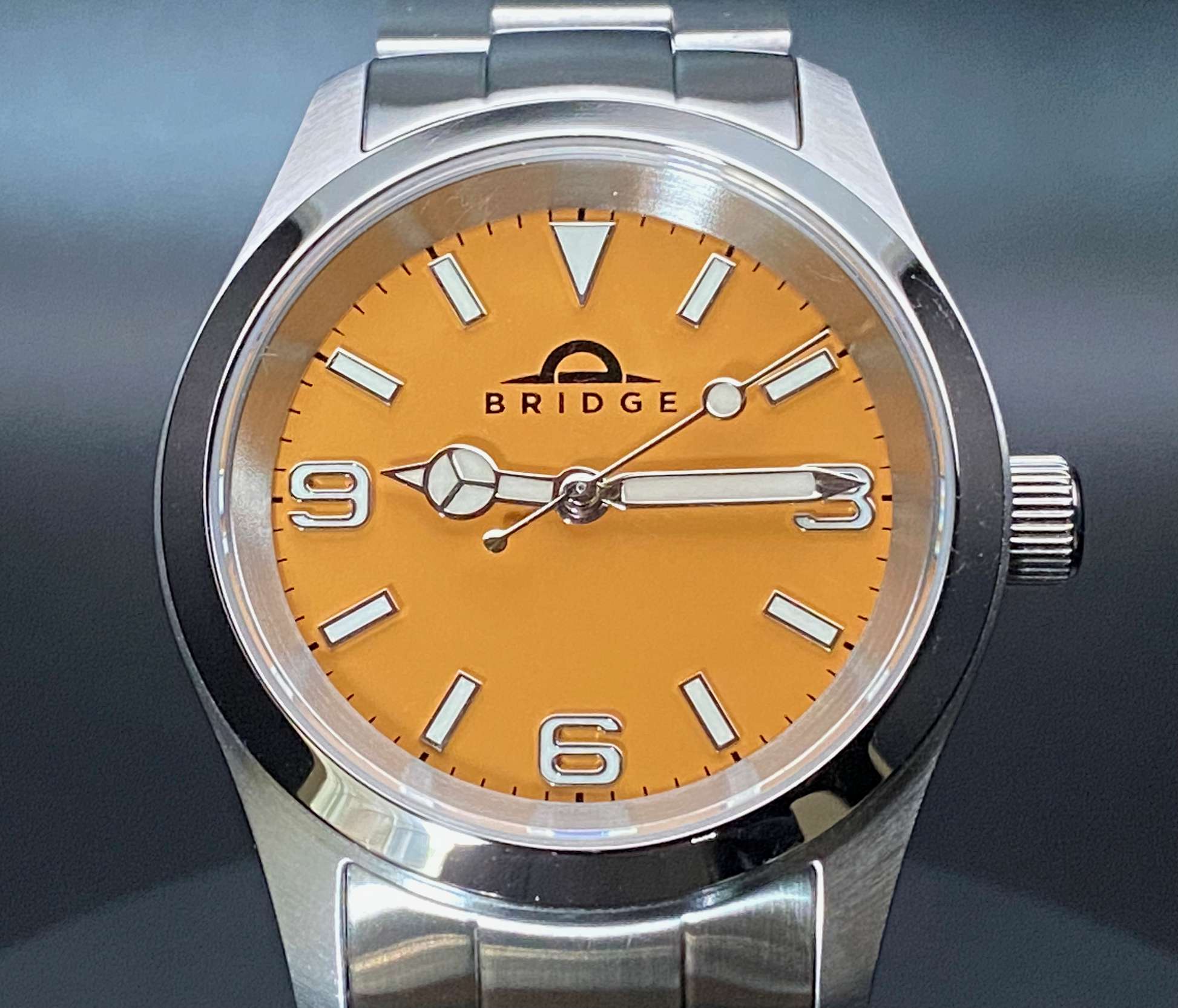 - Dial: Bridge Explorer in matte orange with blue-green lume