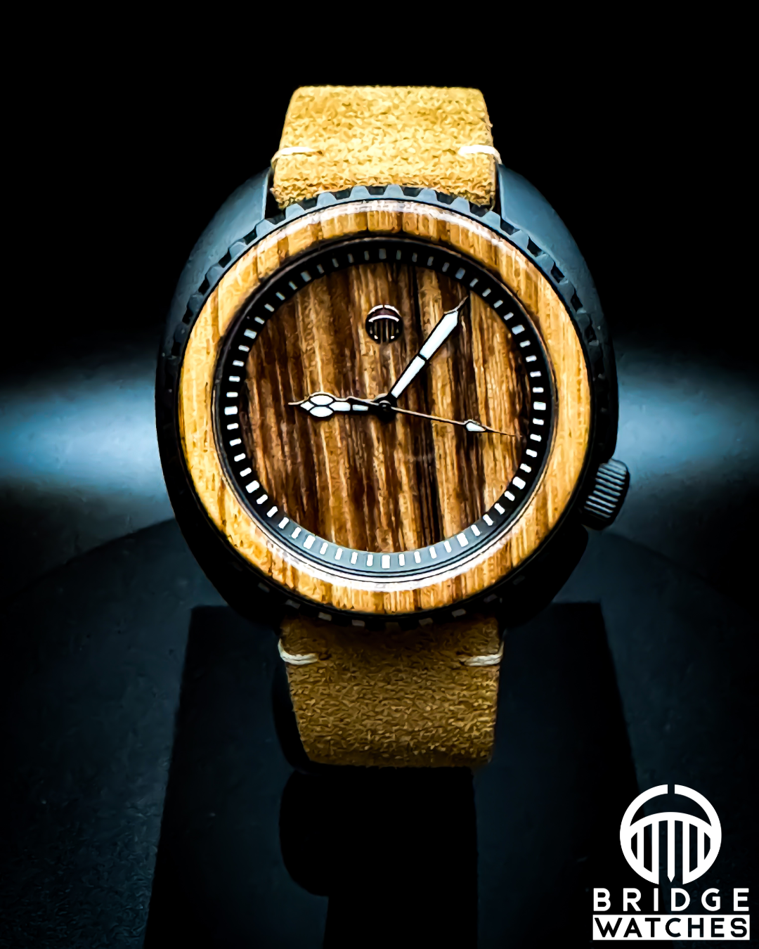 - Bezel: Rotating 120-click unidirectional with Zebrawood insert
