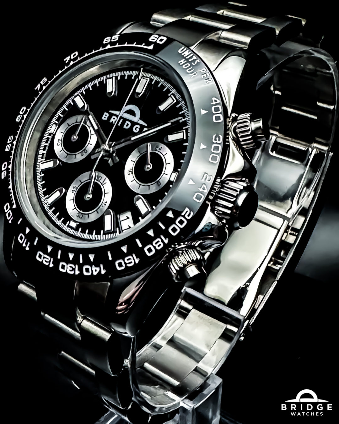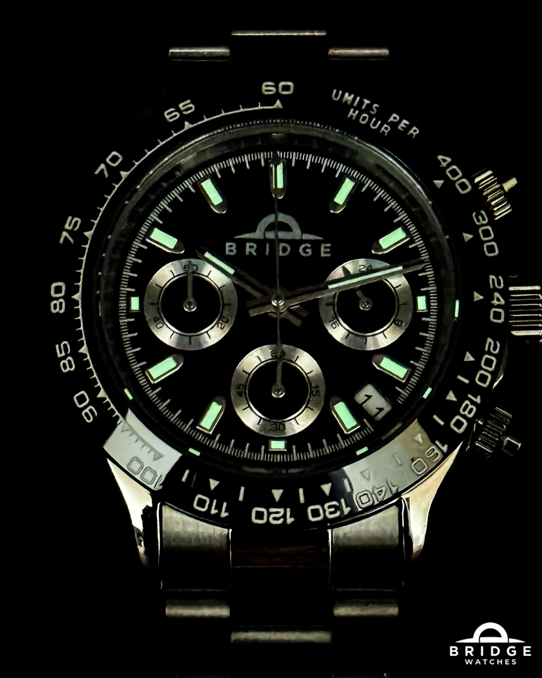- Hands: Daytona style silver hour, minute, and sub dial hands